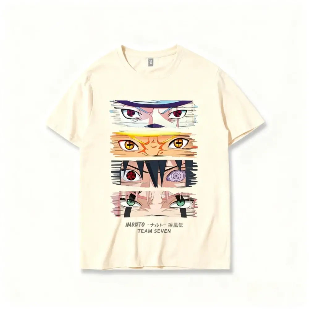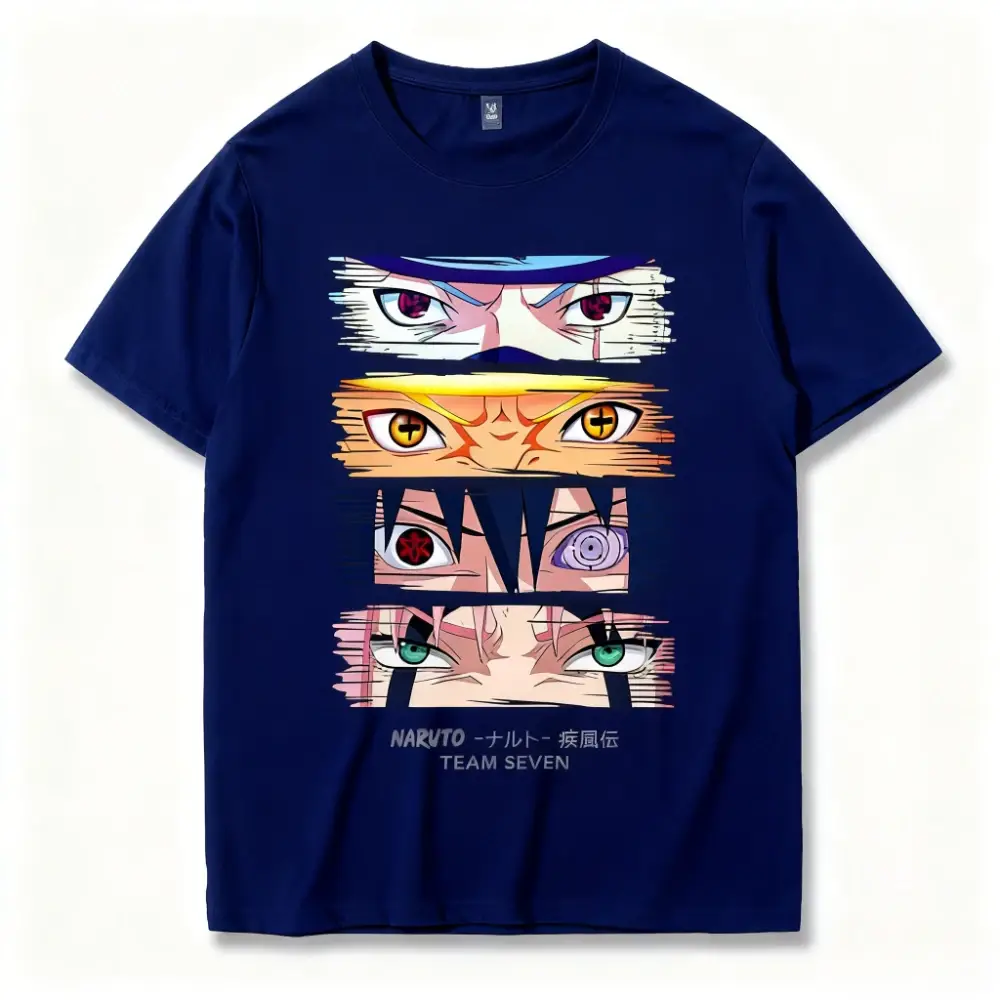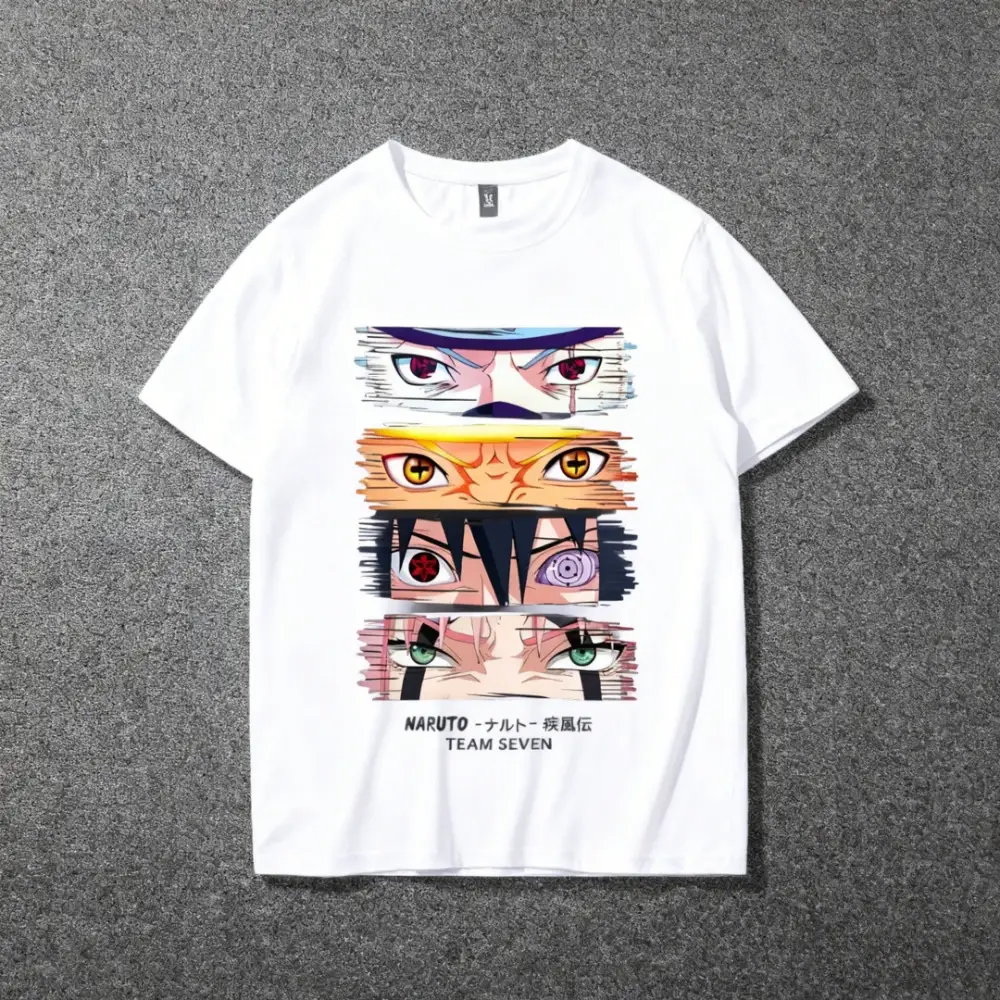 Plongez au cœur de la Grande Guerre Ninja avec ce T-shirt Naruto Shippuden unique. Ce design met en avant l’évolution des quatre membres emblématiques de l’équipe 7 à travers leurs regards les plus puissants :